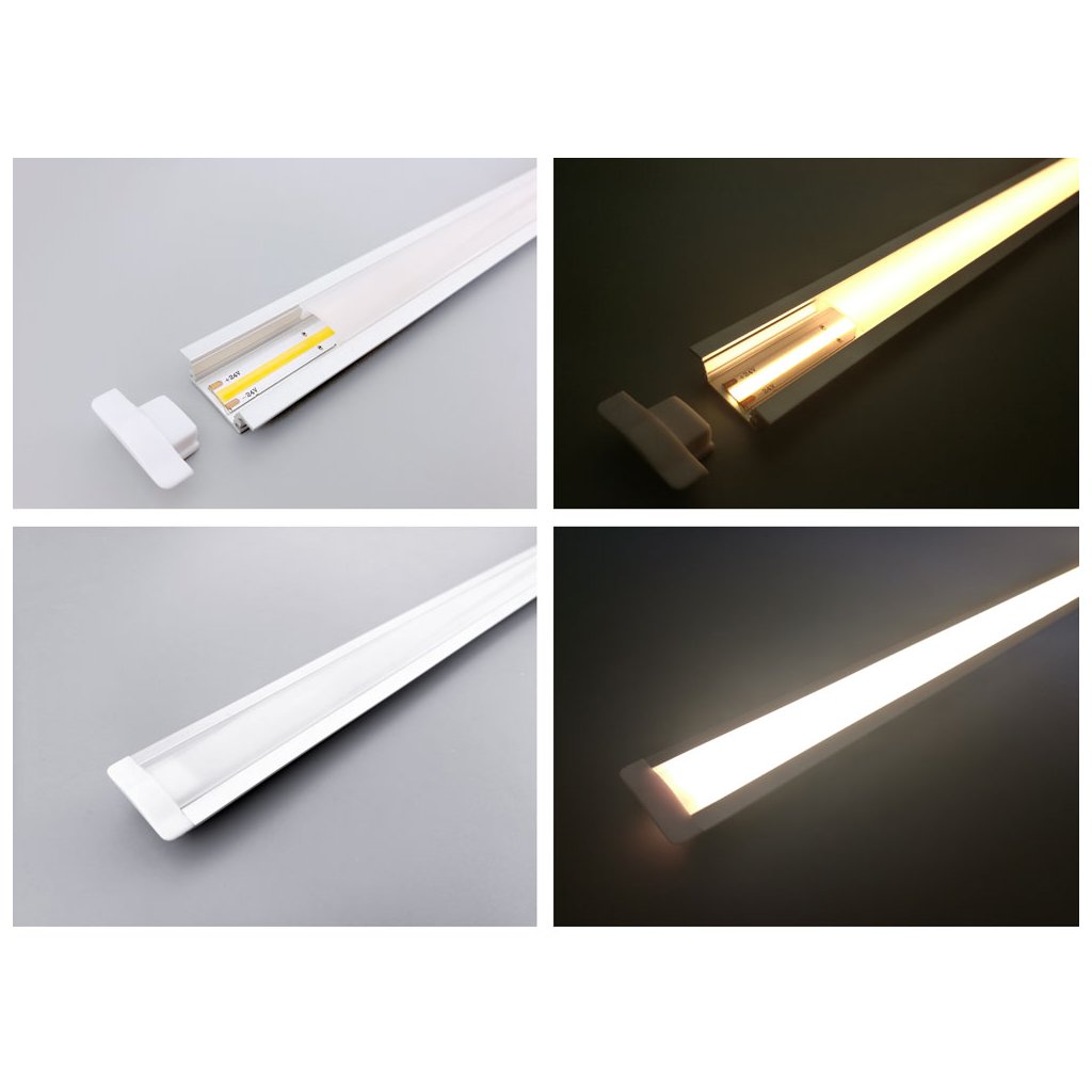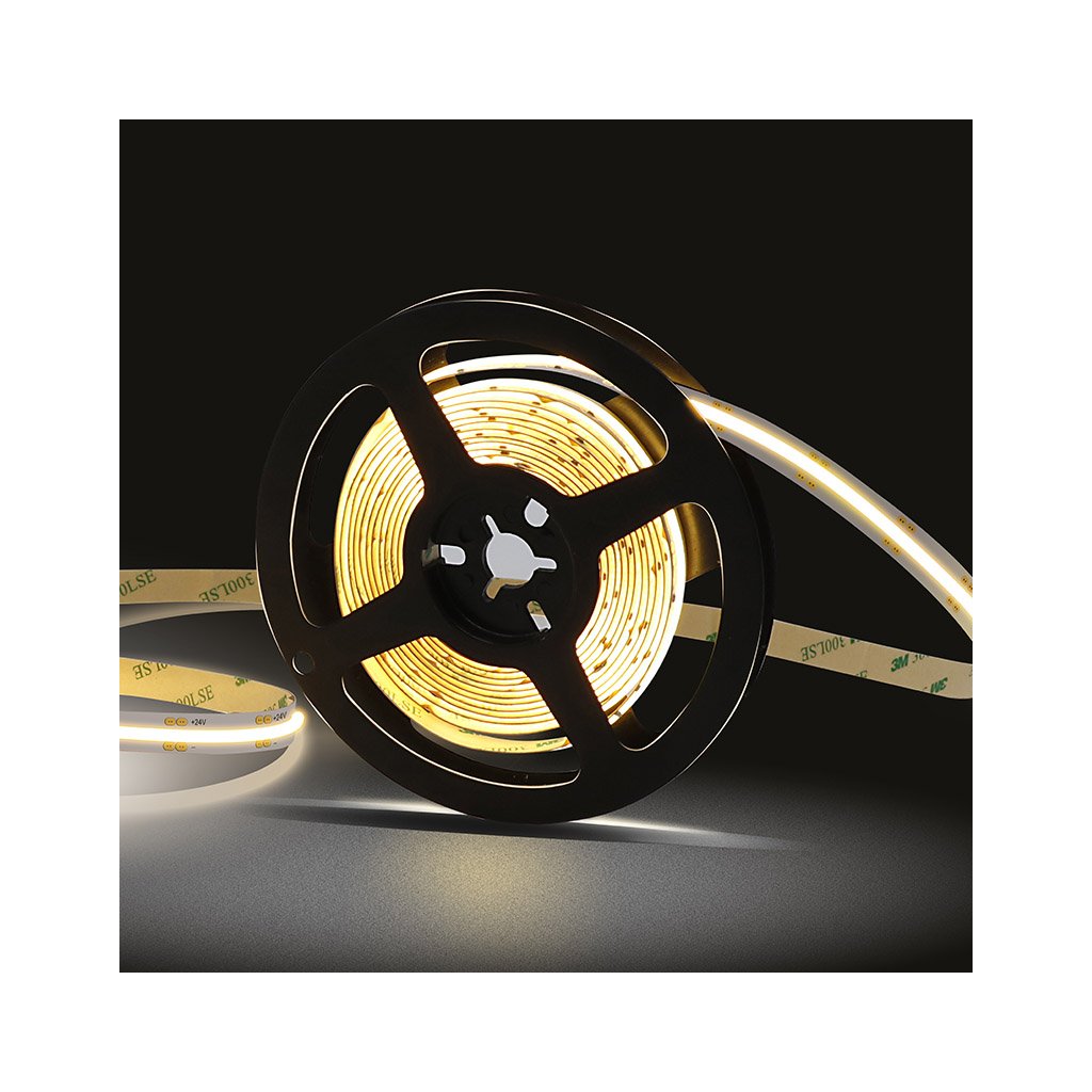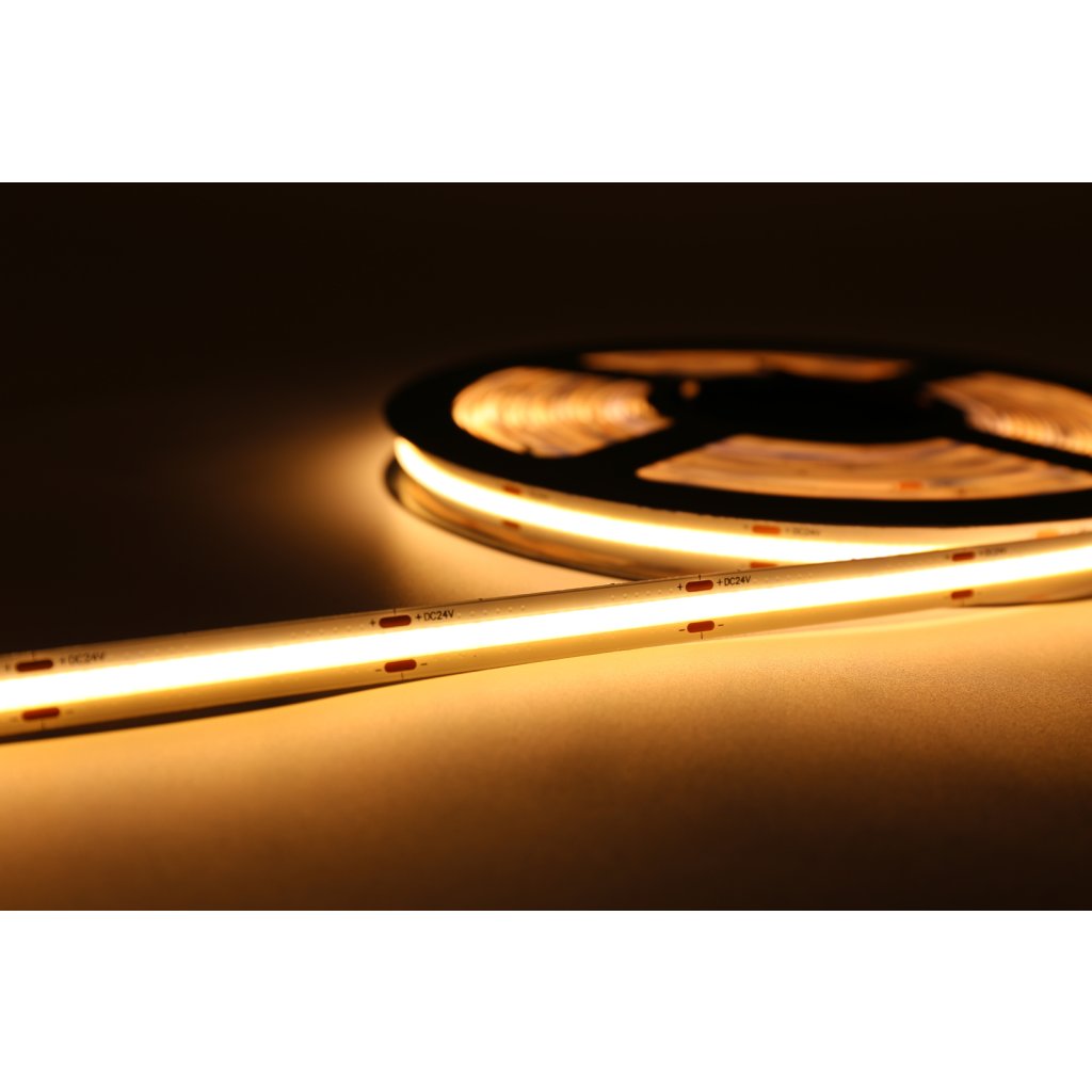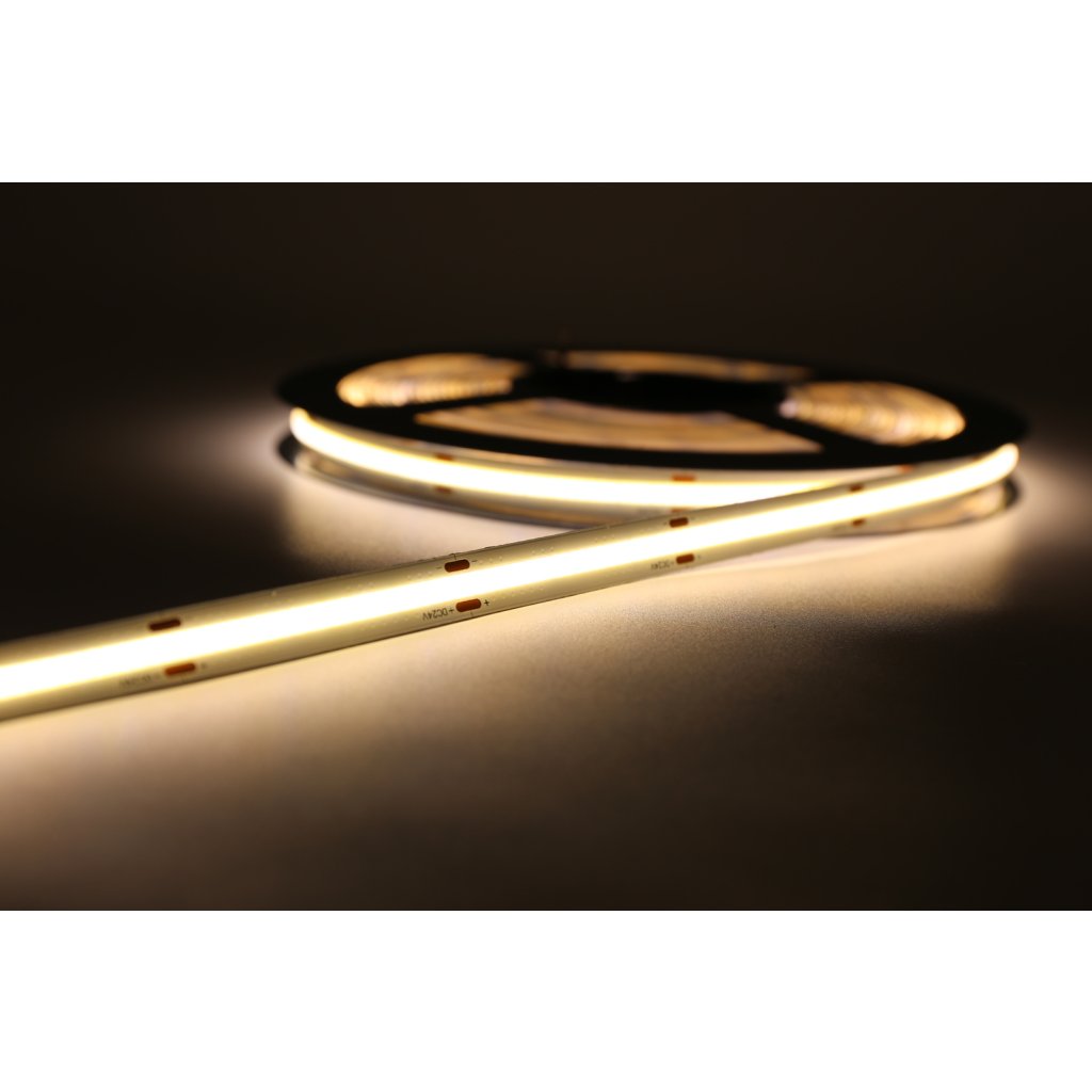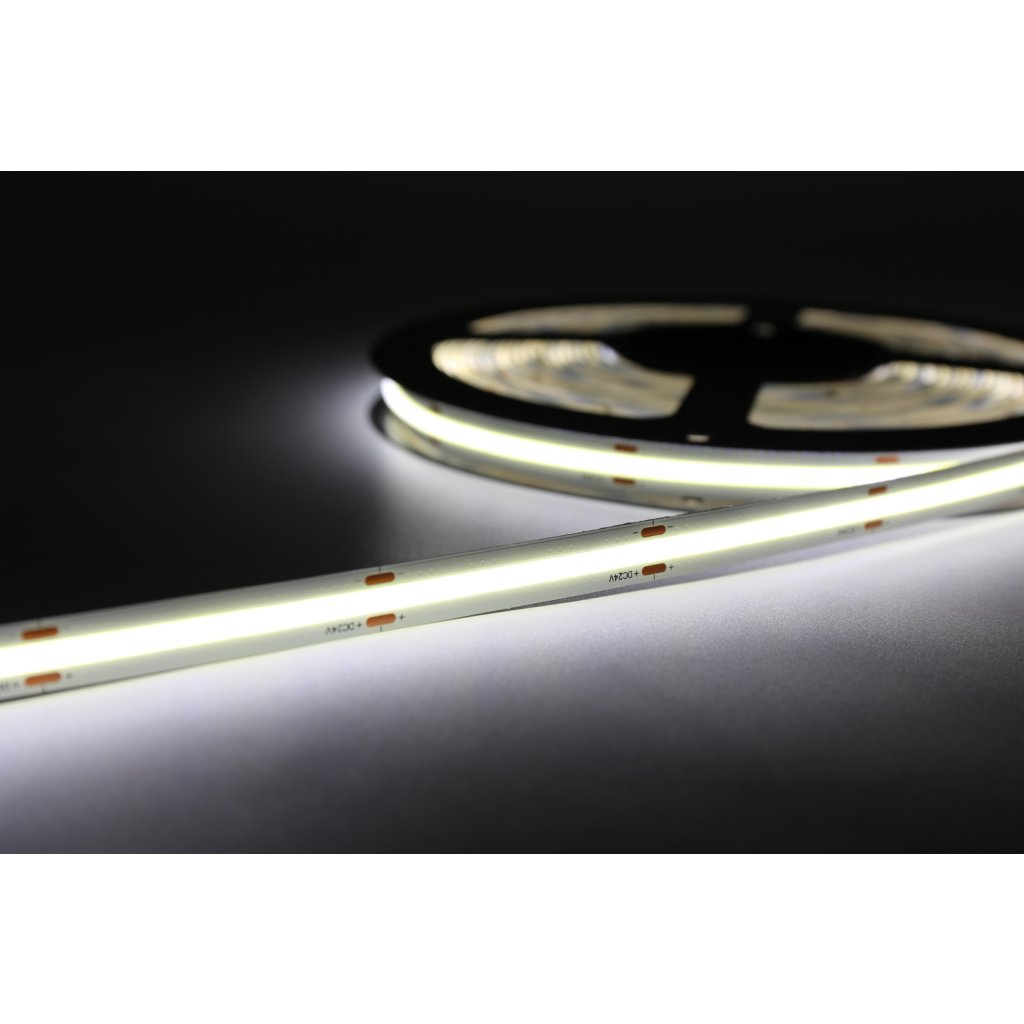Jedná se o nejmodernější LED pásek na trhu v provedeni COB, kde jednotlivé LED čipy jsou zality do vrstvy luminoforu a dohromady tak vytvářejí homogenně svíticí plochu. Díky tomu je COB pásek také extrémně flexibilní a lze mnohem lépe tvarovat a ohýbat. Další nespornou výhodou COB pásků oproti klasickým SMD páskům je vyzařovací úhel 180°, takže světlo je mnohem lepé rozptýleno do prostoru.